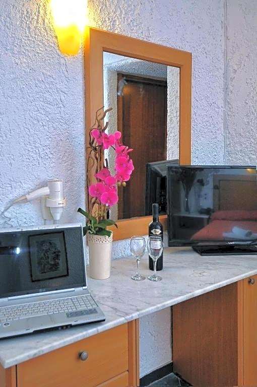 820 feet from the beach this air-conditioned room has a balcony overlooking the Cretan Sea, the mountains or the sun terrace. An LCD satellite TV and fridge are included.